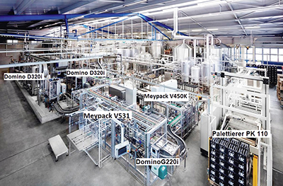 Im März 2013 verkaufte die Doppelleu Brauwerkstatt das erste Bier. Seither wächst das Unternehmen rasant. Bereits ein Jahr später kam die Produktion an den Anschlag. Peter Bürgler: «2014 rief mich Herr Bucher an und wollte sich mit mir die Möglichkeiten von Meypack anschauen.» Einen Monat später bestellte er bei Meypack, dem deutschen Spezialisten für Verpackungs- und Palettierlösungen, drei Maschinen – eine occ. V531 Baujahr 2000, zum Verpacken von 3,3-dl-Flaschen zu 6 Stück in einen Karton, eine neue VP450K, um je vier 6er-Kartons auf einen Tray zu stellen und einen occ. Palettierer, um die Trays automatisch zu palettieren. Zu diesen Maschinen konnte Chromos noch einen Domino G-Serie G220i Thermo-Inkjet zur Kennzeichnung der 6er-Packung mit Haltbarkeitsdatum sowie Trays mit Haltbarkeitsdatum und Barcode liefern.
