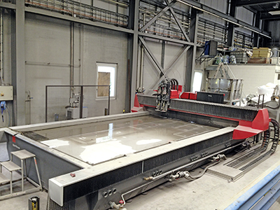 Seit Juni 2015 haben wir eine neue CNC-2D- und 3D-Wasserstrahlmaschine in Betrieb. Diese Technologie erlaubt die Bearbeitung dreidimensionaler Körper und damit die Herstellung von komplexen, einbaufertigen Bauteilen oder speziellen Design-Teilen für die Architektur oder Kunst.