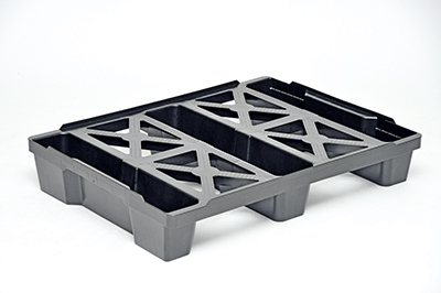 Werden die Paletten im Mehrwegkreislauf eingesetzt, können sie für den leeren Rücktransport mit einer Volumenreduktion von 65 % ineinandergeschachtelt werden – die Schachtelhöhe beträgt nur 50 mm.